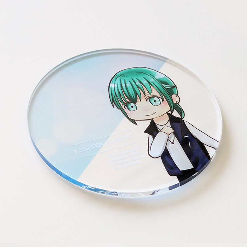 透明感がきれいな アクリル製コースター。水滴に強く、反りや汚れの心配が少ないため実用的なコースターとして長くご使用いただけます。