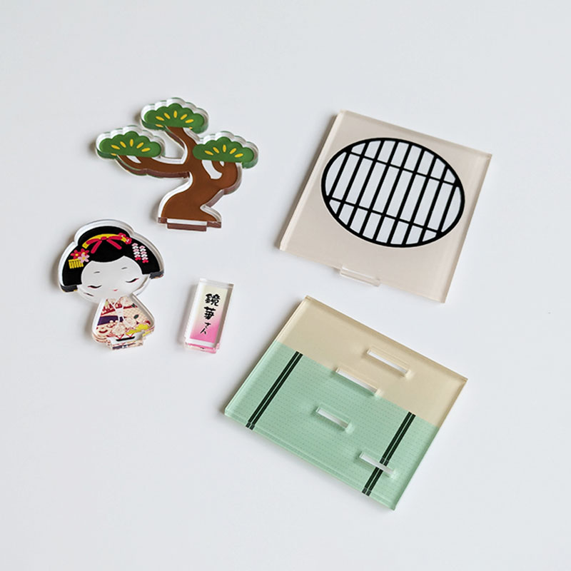 アクリルジオラマは、台座に複数のパーツを差し込むことで奥行きと立体感を楽しめるアクリルグッズです。背景パーツを加えることで奥行きが生まれ、展示した際の存在感もぐっとアップします。