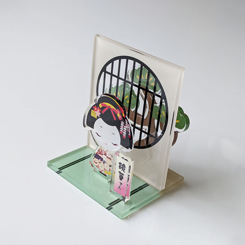 また、前面パーツと背景パーツのあいだに適度な隙間があるため、メモ立てとしても活用できる実用的なデザインです。観賞用としてはもちろん、卓上アイテムとしても楽しめる、汎用性の高いアクリルグッズです。
