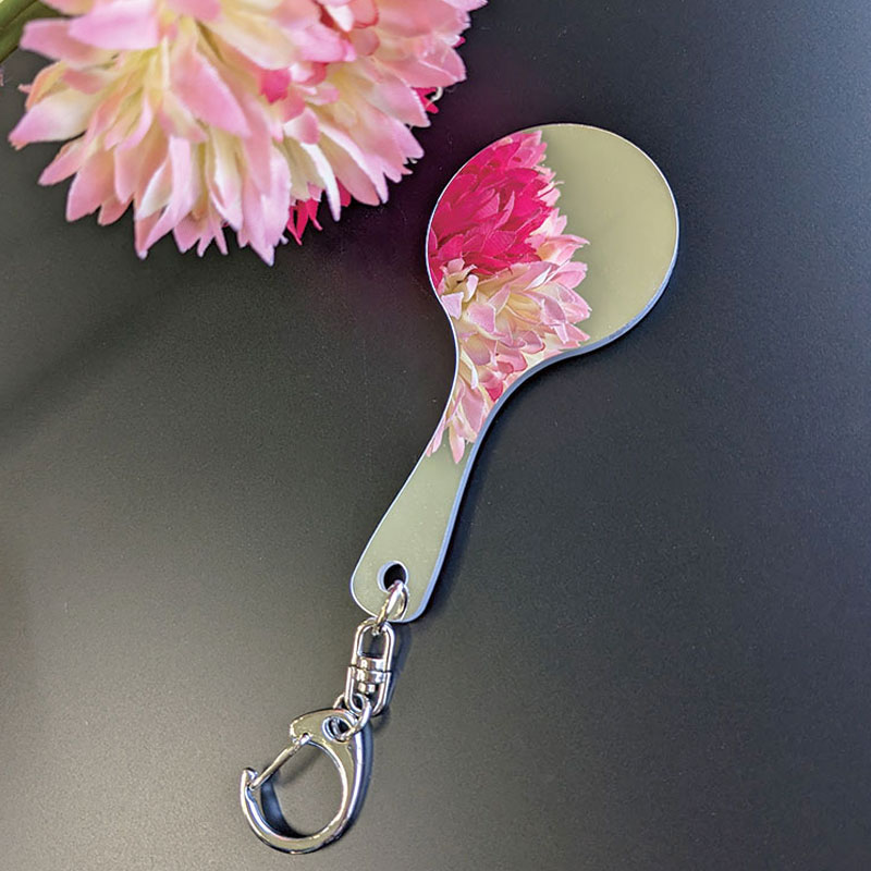 ガラスの手鏡より軽量で持ちやすく、割れにくなります。お好きなキャラクターやデザインを印刷することも可能で、オリジナルの手鏡の作成が可能です。持ち運びしやすく安全なためお子供様用やノベルティとしても人気です。また、両面ミラー仕様のため表面裏面どちらもミラーとして使用することができます。