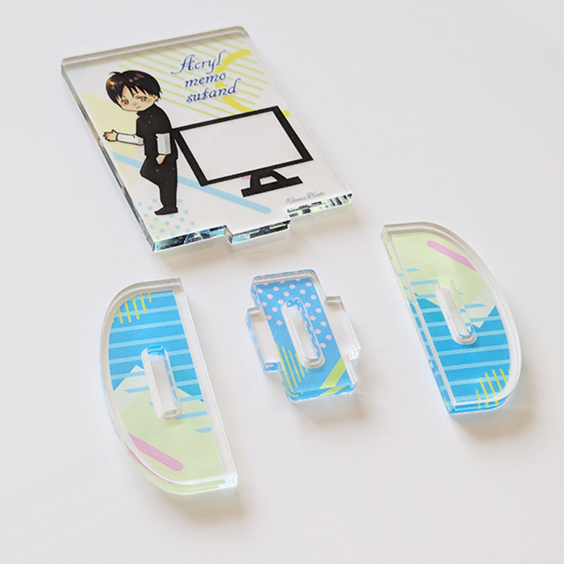 ゆらして動くアクリルスタンドになります!本体部分、台座部分、ゆらゆら部分と印刷可能。 組み立てて、ゆらゆら、かわいいアクリルスタンドを楽しみましょう。