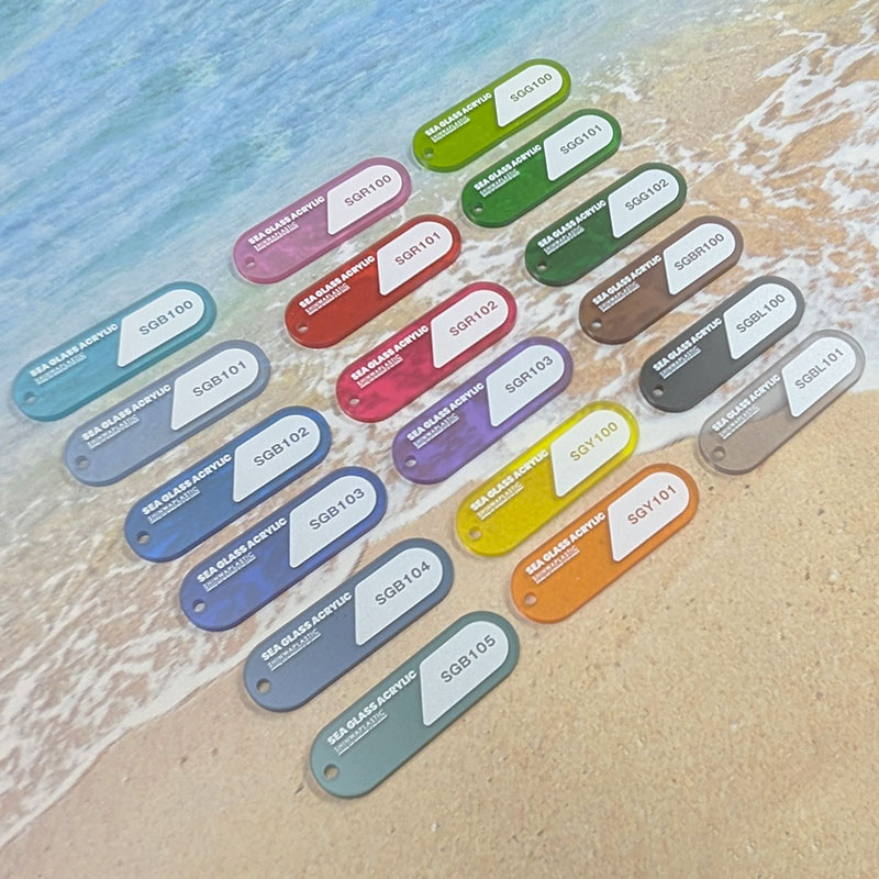 夏にぴったり、涼やかカラー。 半透明カラーのアクリルを使用しているため、やさしく透ける印象の仕上がりです。 カットしたアクリルは、まるで海辺で見つけたシーグラスのような柔らかな風合い。 カラーバリエーションも豊富に取り揃えており、ブルー系をはじめ、イエローやピンクなど多彩なカラーのご用意が可能。 色によって印象が異なり、さまざまな雰囲気をお楽しみいただけるデザインとなっております。 さらに、光を拡散する加工を施しており、太陽光や蛍光灯の光が反射しにくくなっています。 反射を気にせずに撮影や展示ができるため、推し活アイテムとしてもおすすめです。※印刷は前面からの印刷となります。